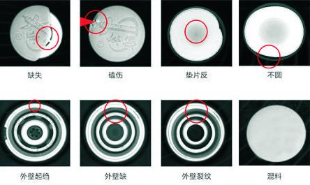 本系統(tǒng)通過采集高清的瓶蓋圖像,利用圖像分析處理技術(shù),依據(jù)各類缺陷自身顏色、紋理、幾何特性等,可檢測(cè)出瓶蓋是否存在瓶蓋高、 瓶口缺陷、液位高低等缺陷。